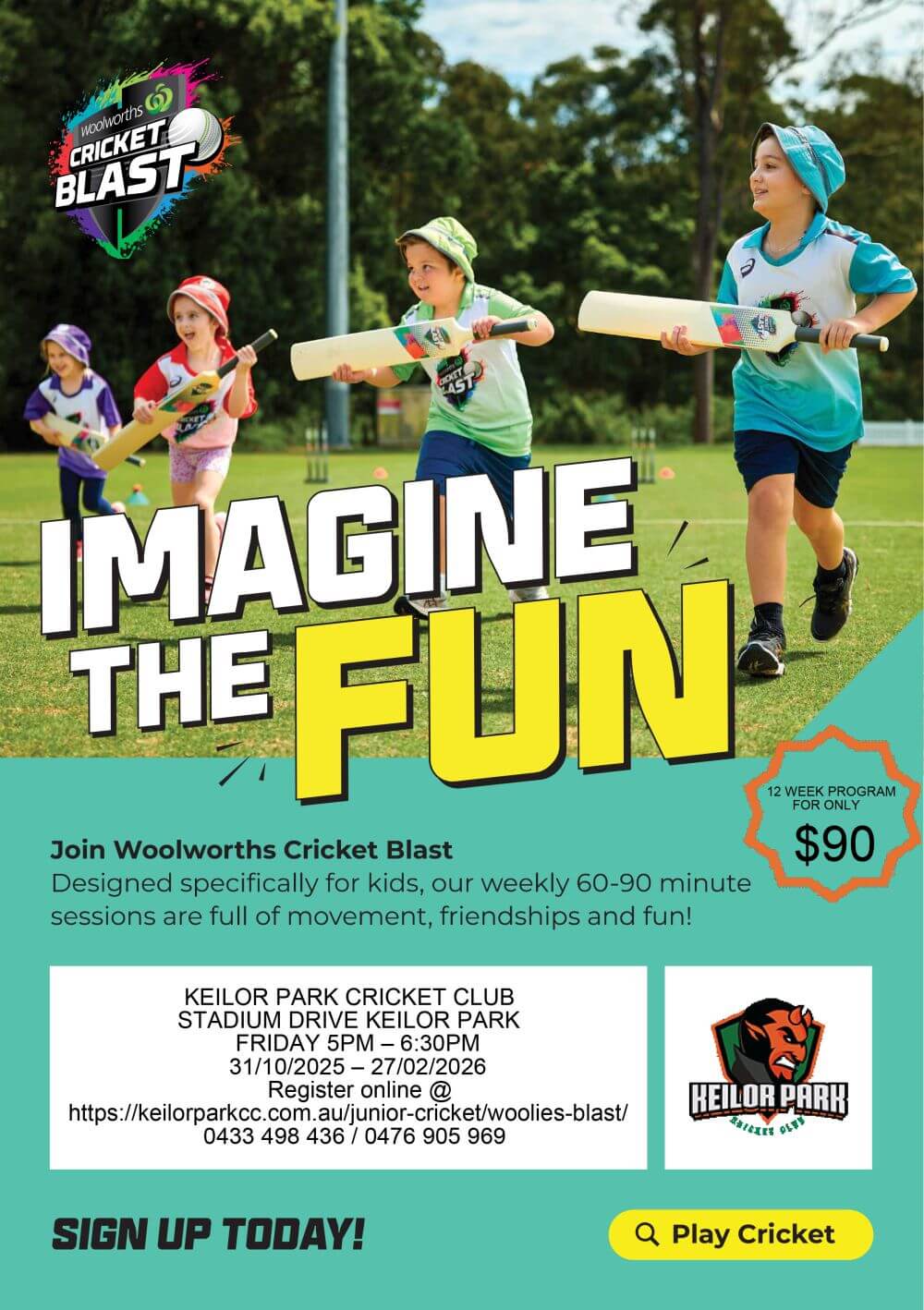 Keilor Park Cricket Club, in conjunction with Cricket Victoria, is again running the Woolworths Blast Program, which focuses on providing a safe environment for having fun, participation and skill development in game situations.